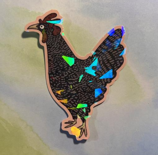[Sticker] Barred Rock Chicken 3 Inch Vinyl Sticker - Holographic (Shatter Pattern)