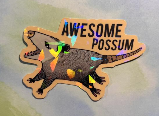 [Sticker] Awesome Possum - 3 Inch Vinyl Sticker - Holographic